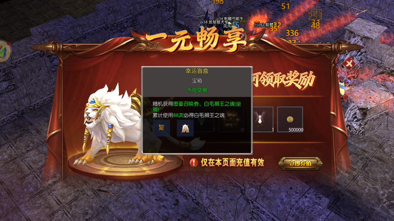 白毛狮王之魂(坐骑):累计开启 88 次必出,造型霸气且提供移动速度加成,是前期开荒的实用坐骑。